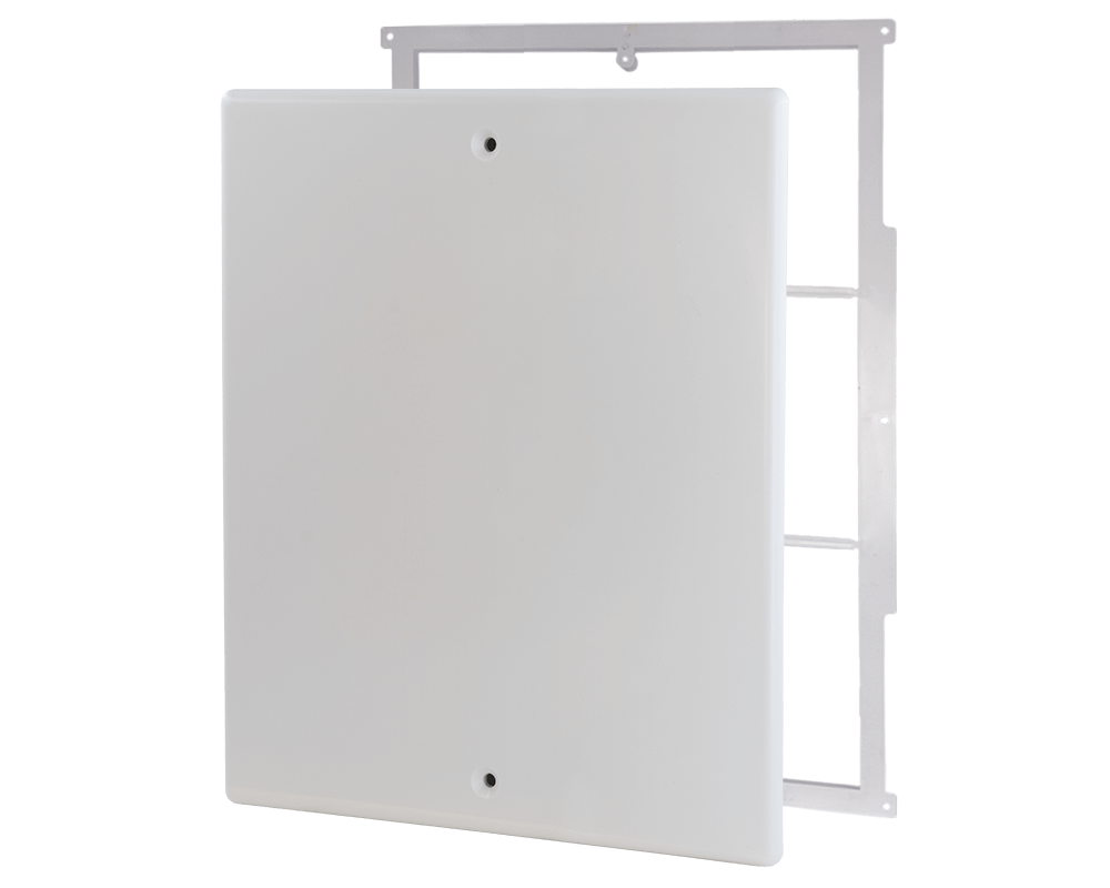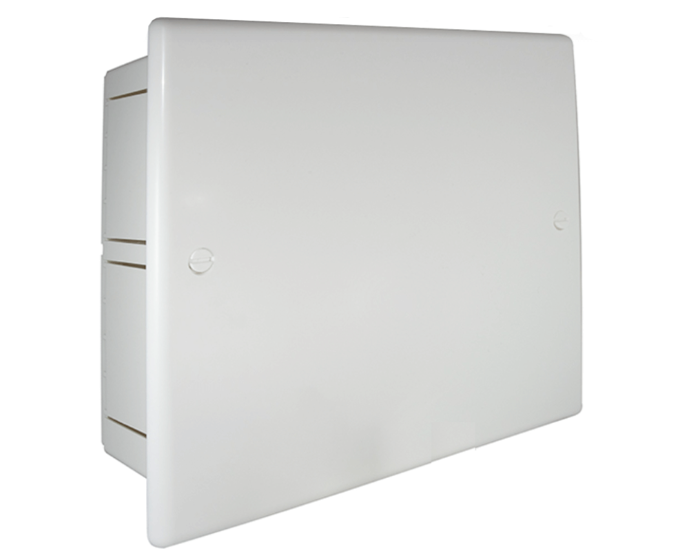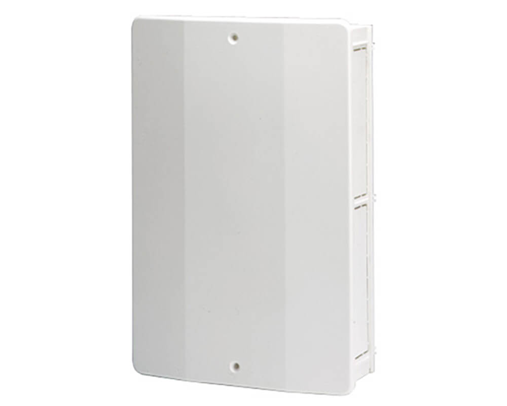 Cassetta d’ispezione in plastica con coperchio bombato completa di supporti e fissaggi regolabili per tutti i tipi di collettori.